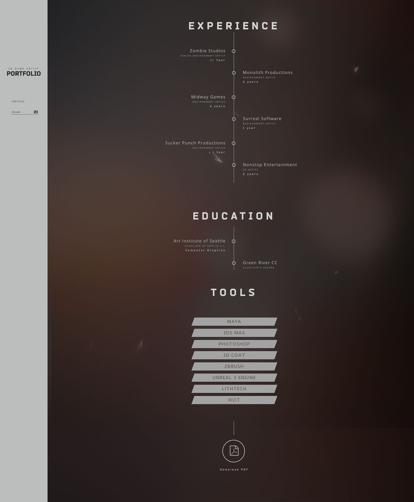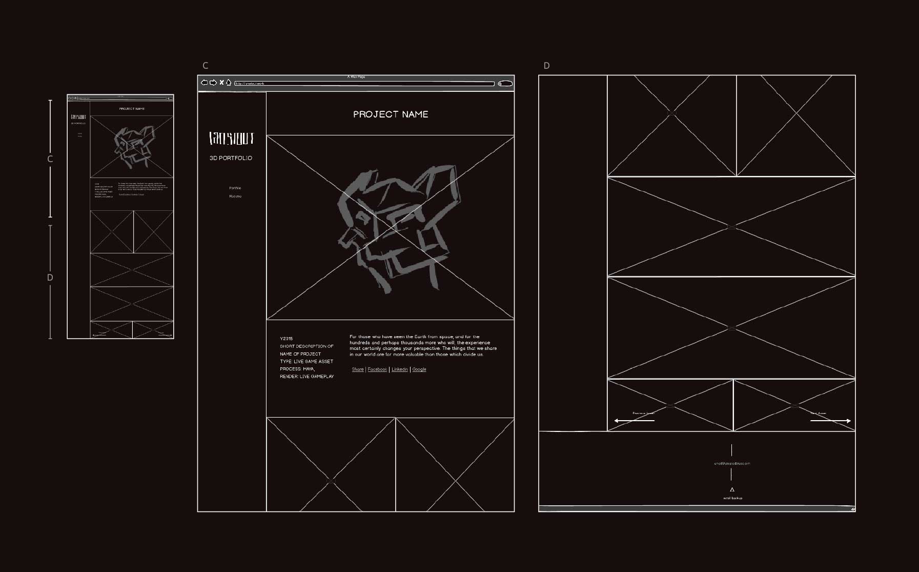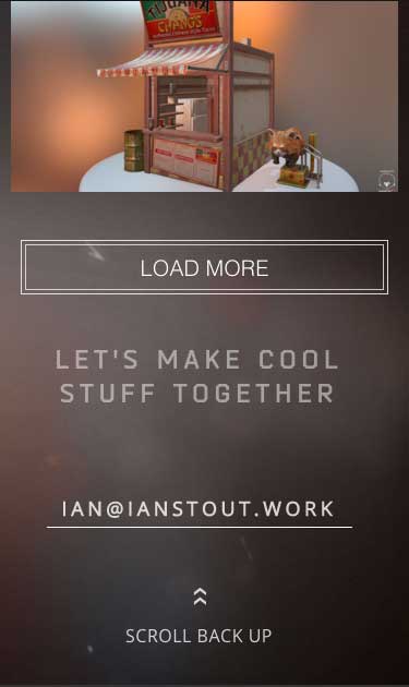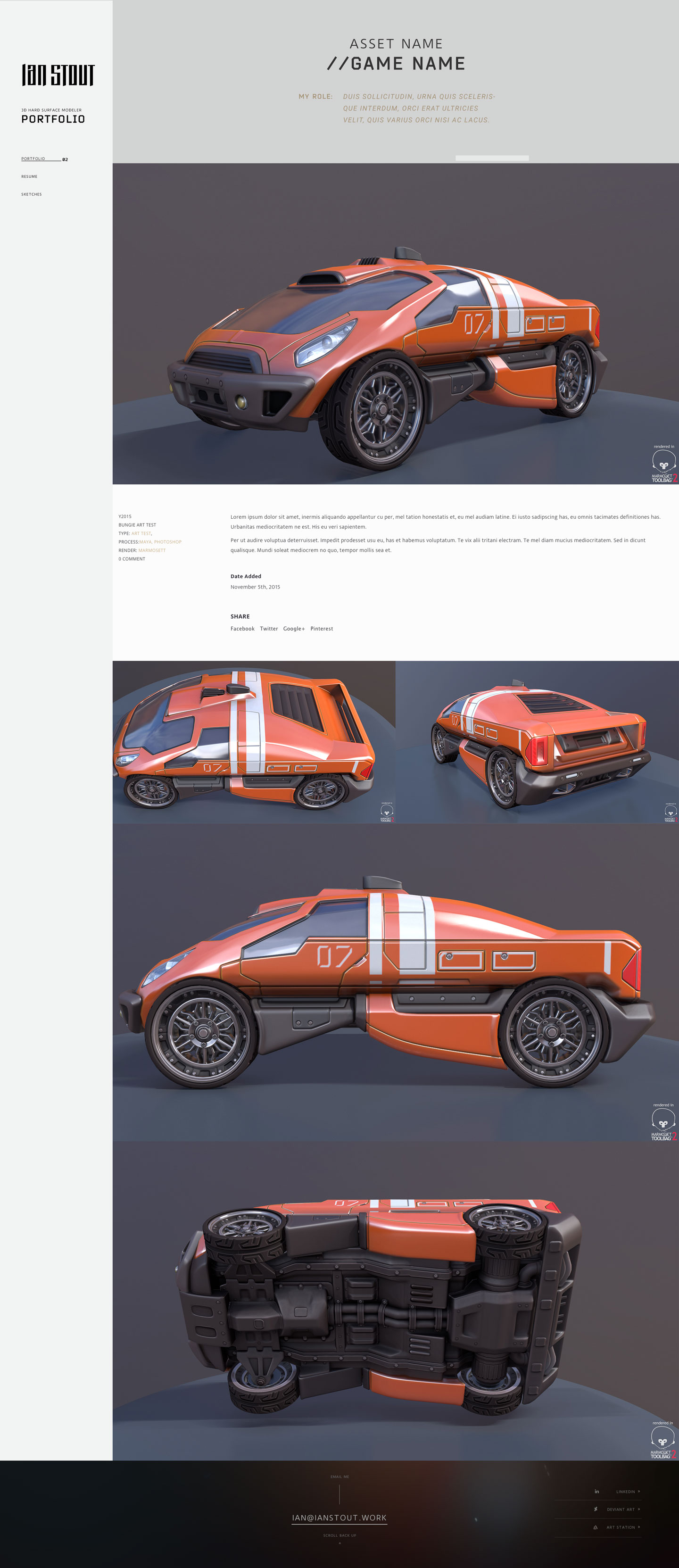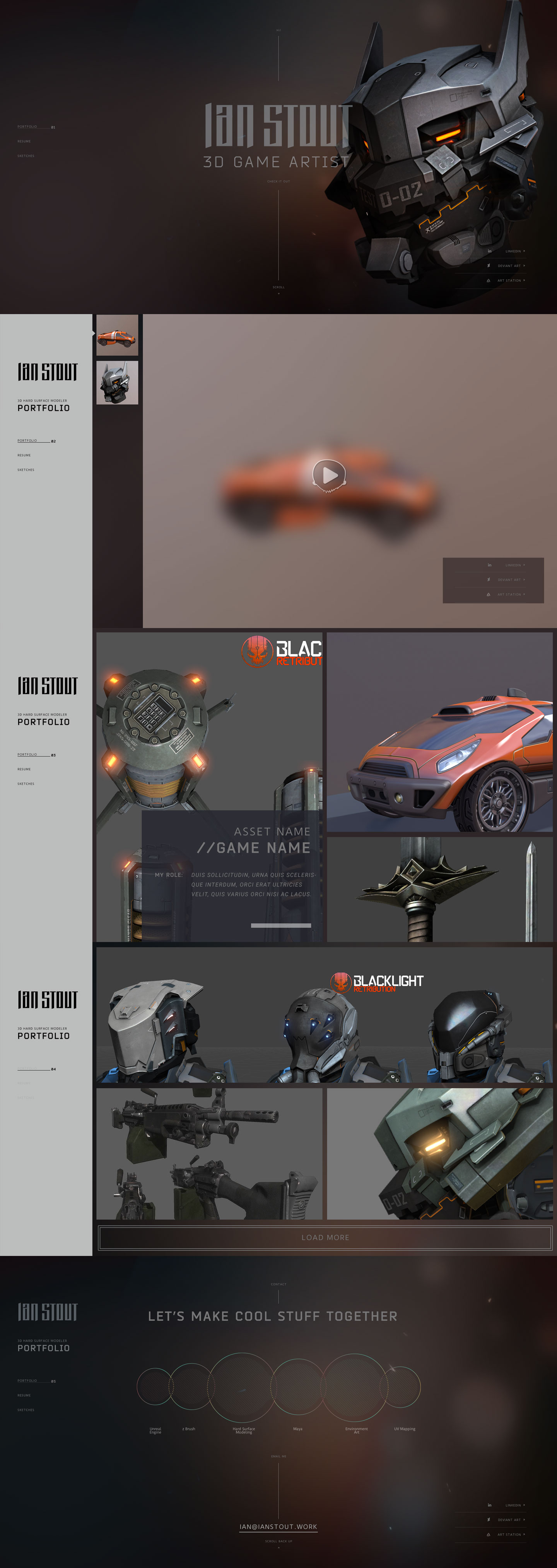 Inspired by the current look and feel of console game websites, with an elegant, interactive, and simple user interface. An interactive 3D web redering plugin was added so that art directors could look more closely at Ian's work.